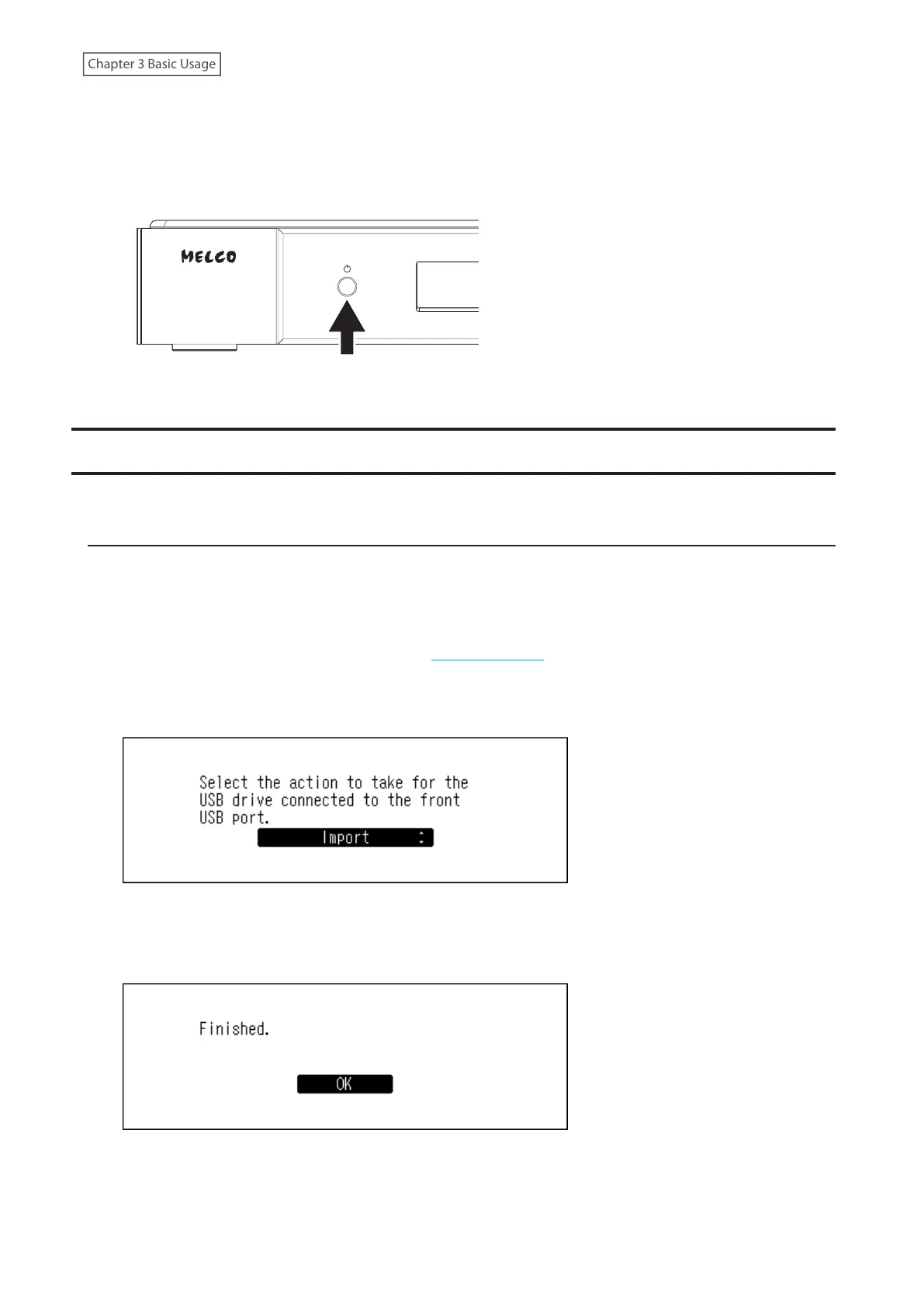 To import music files from a connected USB drive, follow the procedure below.