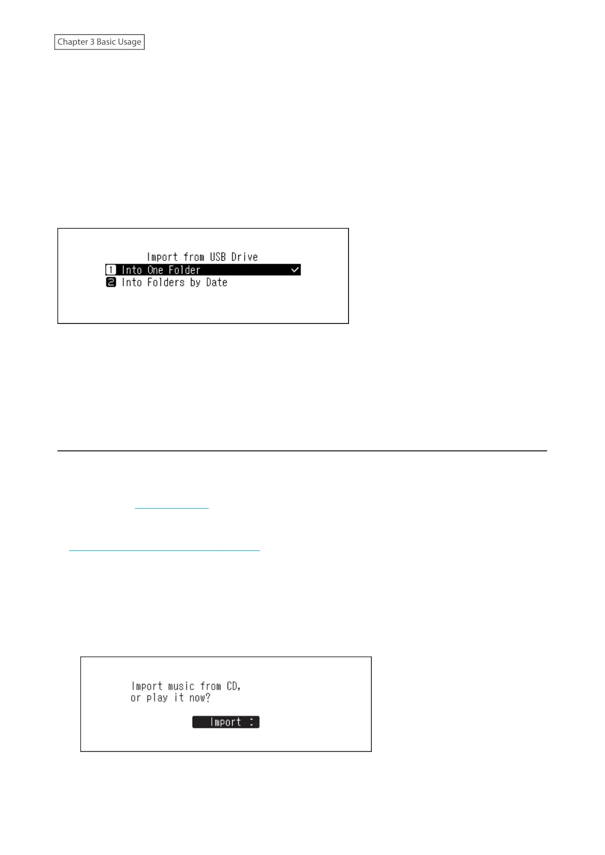 Digital Music Library. To change these options, navigate to Settings > Import from USB Drive and select “Into One