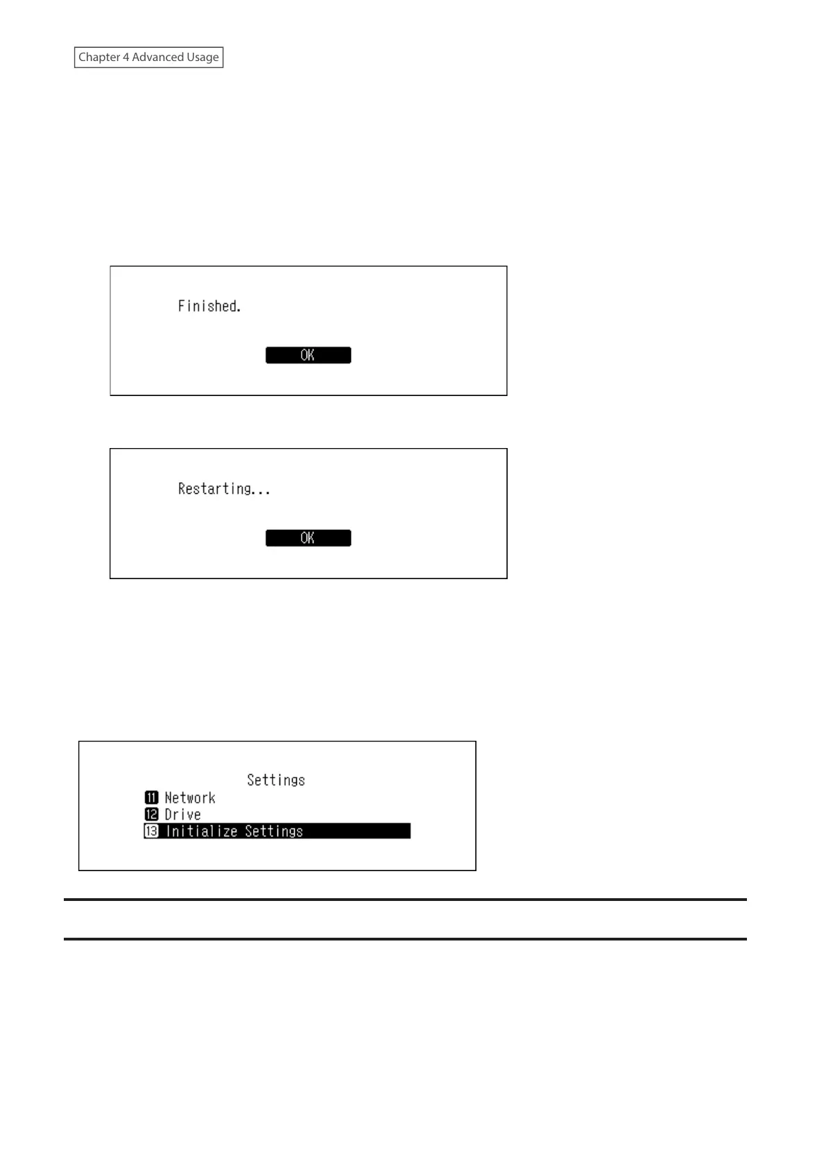 If you navigate to Settings > Initialize Settings on the display panel, you can initialize the settings by selecting “OK”,