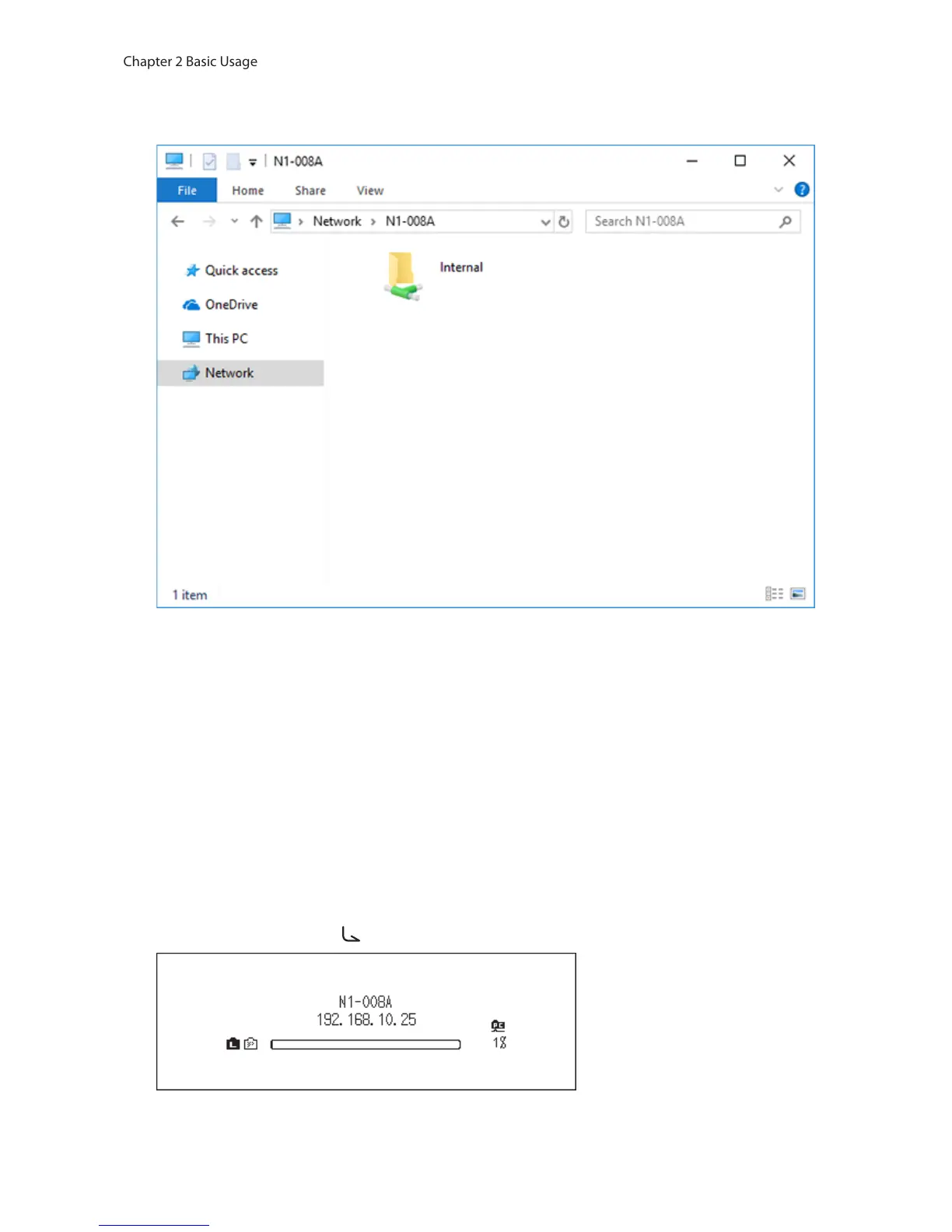 1 Enter “\\” and the N10/N100’s IP address or friendly name (hostname) into the address bar of Windows Explorer,
