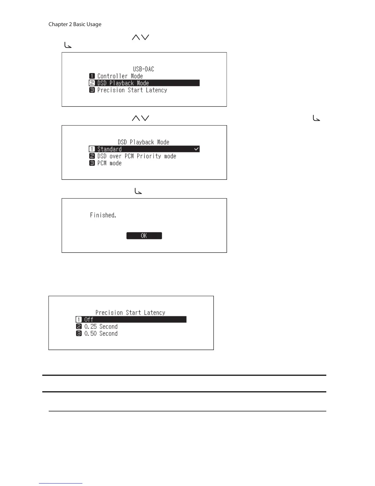 4 Press the Up/Down buttons ( ) and select “DSD Playback Mode”, then press the Menu/Enter button