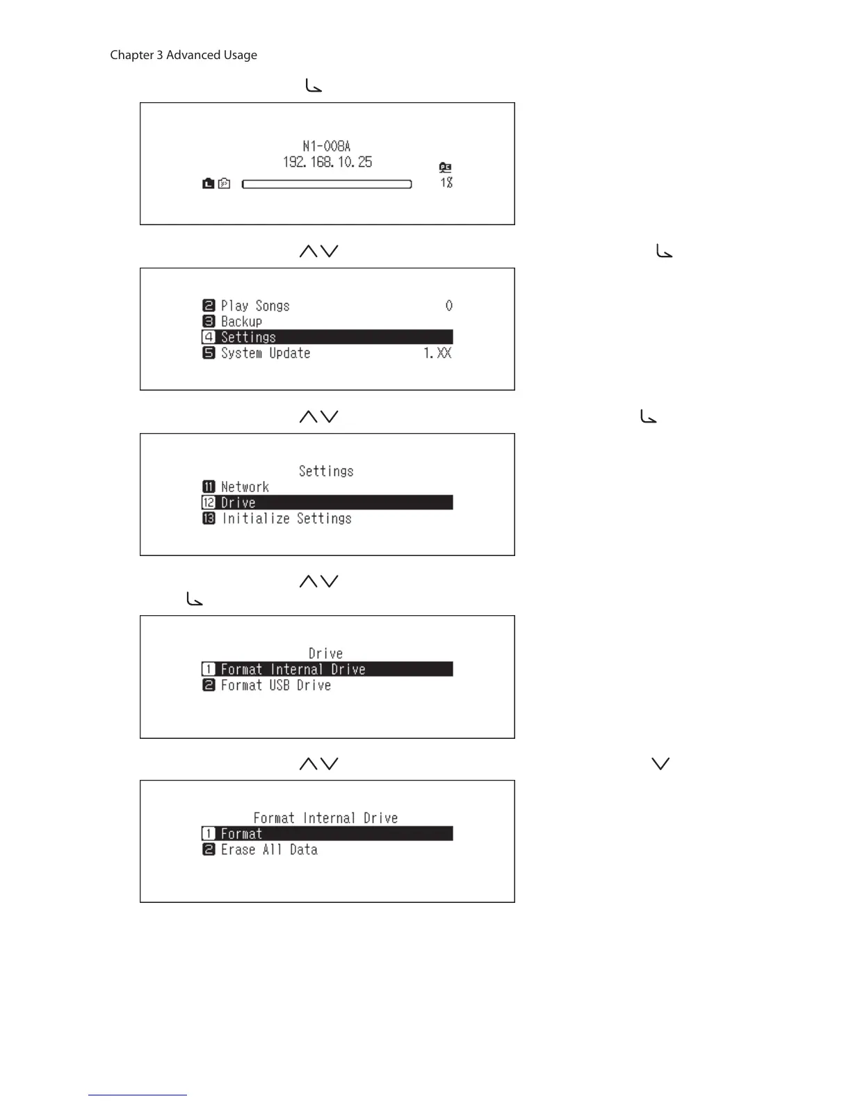 4 Press the Up/Down buttons ( ) and select either the drive to be formatted, then press the Menu/Enter