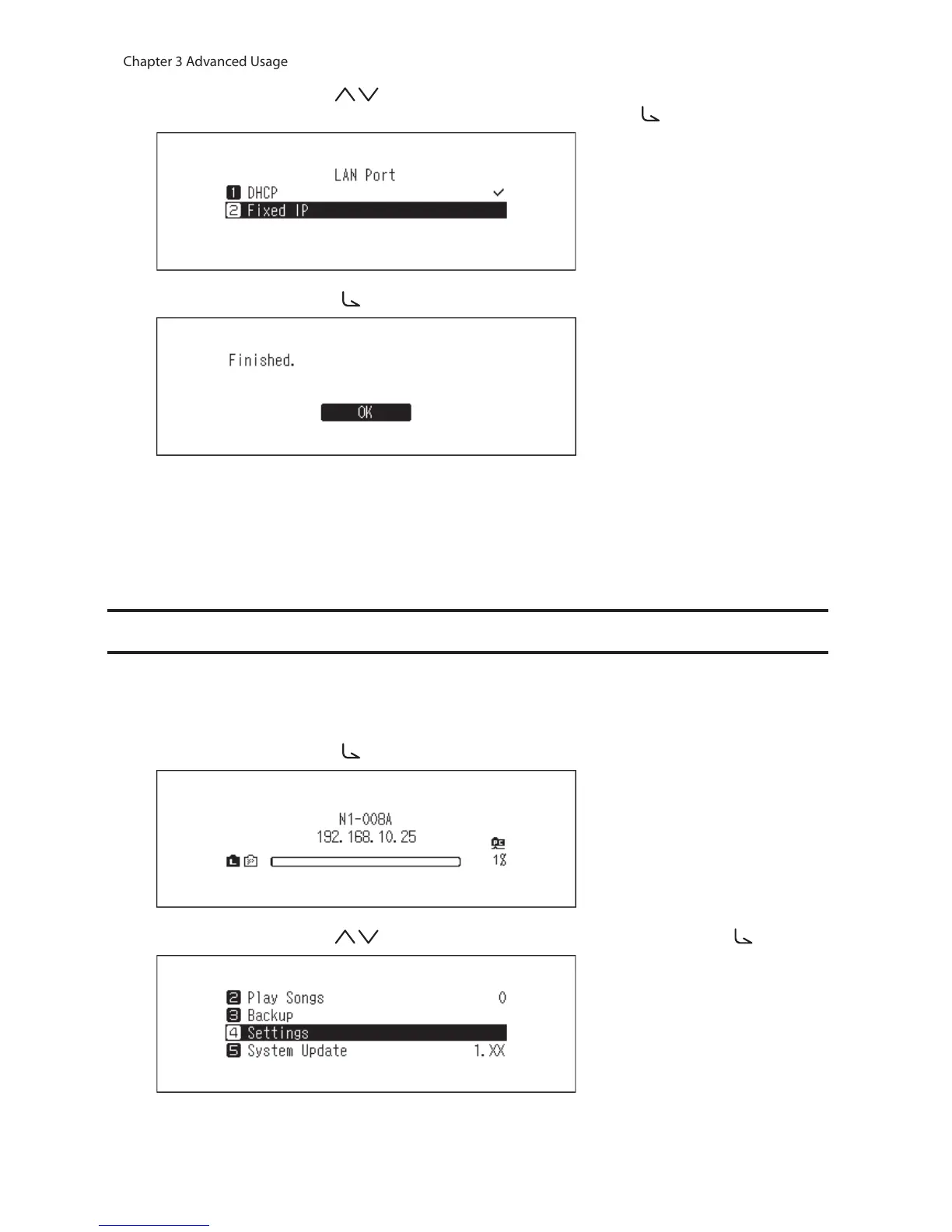 DHCP server or configure a fixed IP address, then press the Menu/Enter button ( ).