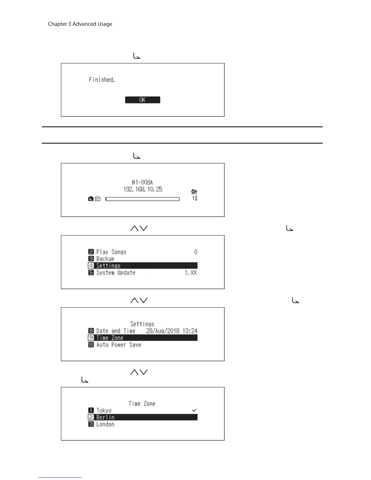 4 Press the Up/Down buttons ( ) and select the time zone to configure, then press the Menu/Enter