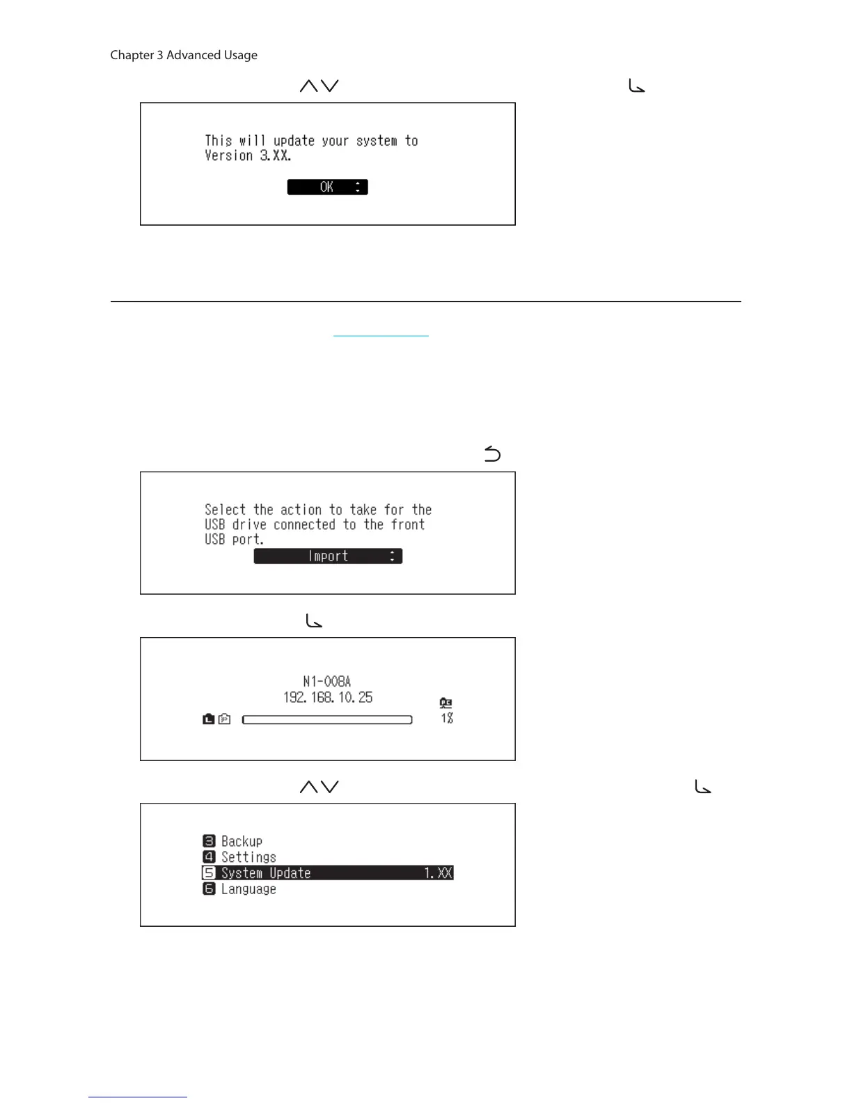 6 Press the Up/Down buttons ( ) and select “System Update”, then press the Menu/Enter button ( ).