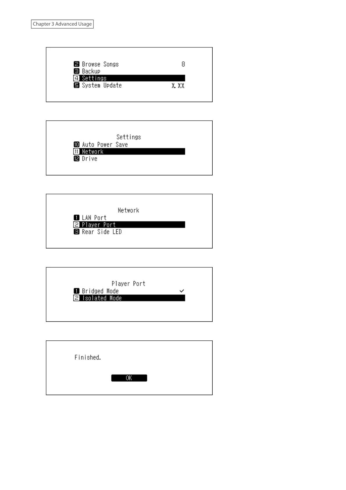 5 Press the Up/Down buttons and select “Network, then press the Menu/Enter button.