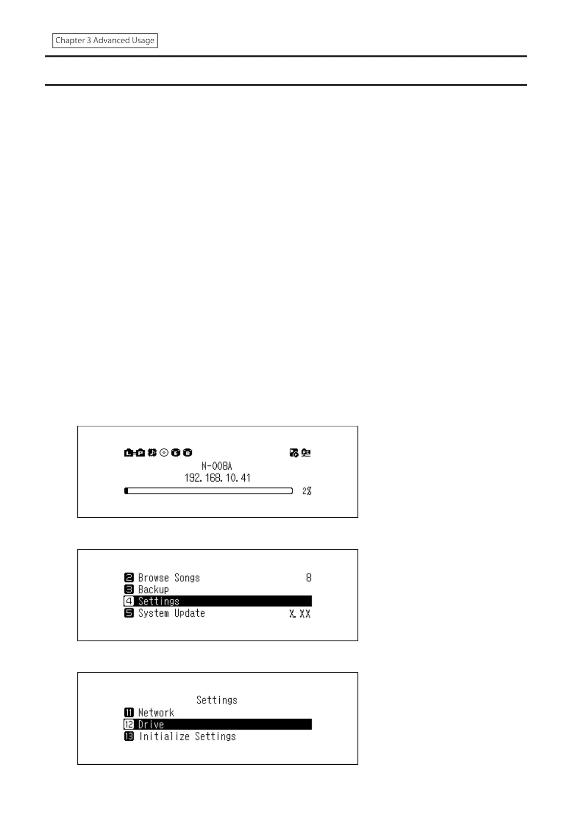 3 Press the Up/Down buttons and select “Drive”, then press the Menu/Enter button.