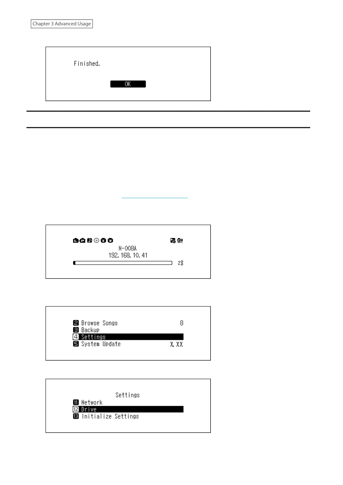 3 Press the Up/Down buttons and select “Drive”, then press the Menu/Enter button.