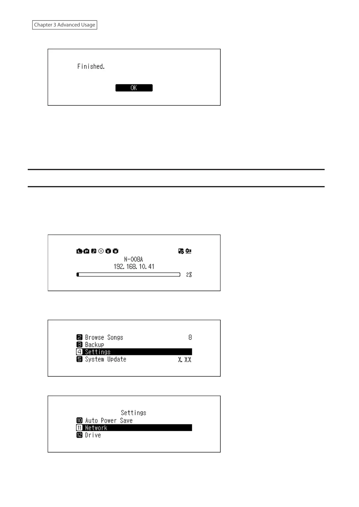3 Press the Up/Down buttons and select “Network”, then press the Menu/Enter button.