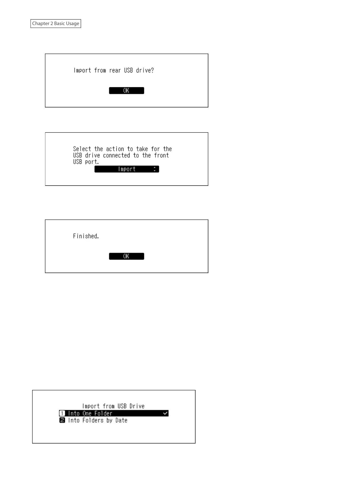 Digital Music Library. To change these options, go to Settings > Import from USB Drive and select “Into One Folder or