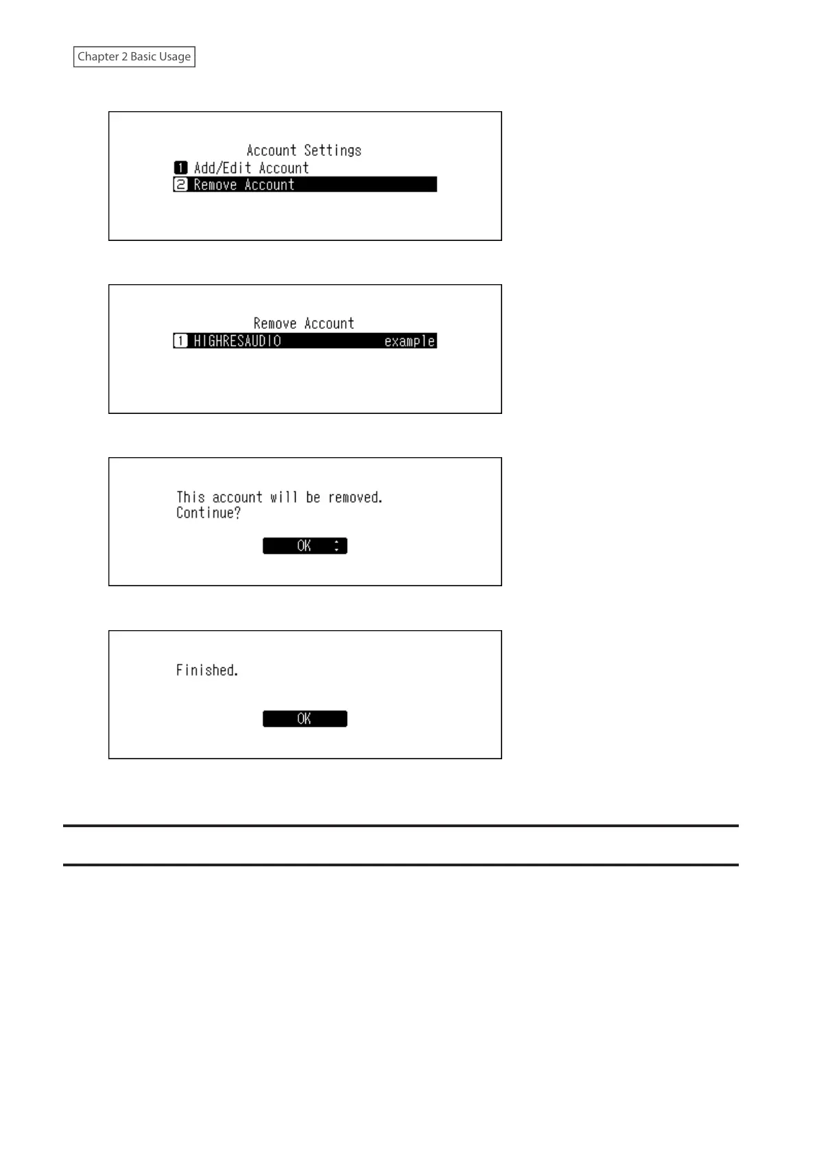 5 Press the Up/Down buttons and select “Remove Account”, then press the Menu/Enter button.