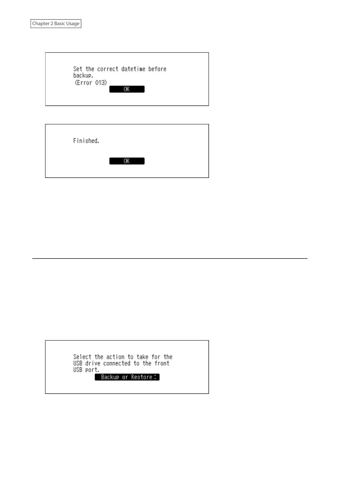 N100, the following screen will be displayed. Press the Up/Down buttons and select “Backup or Restore”, then