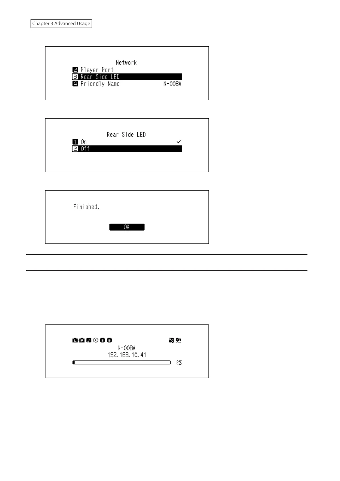 4 Press the Up/Down buttons and select “Rear Side LED”, then press the Menu/Enter button.