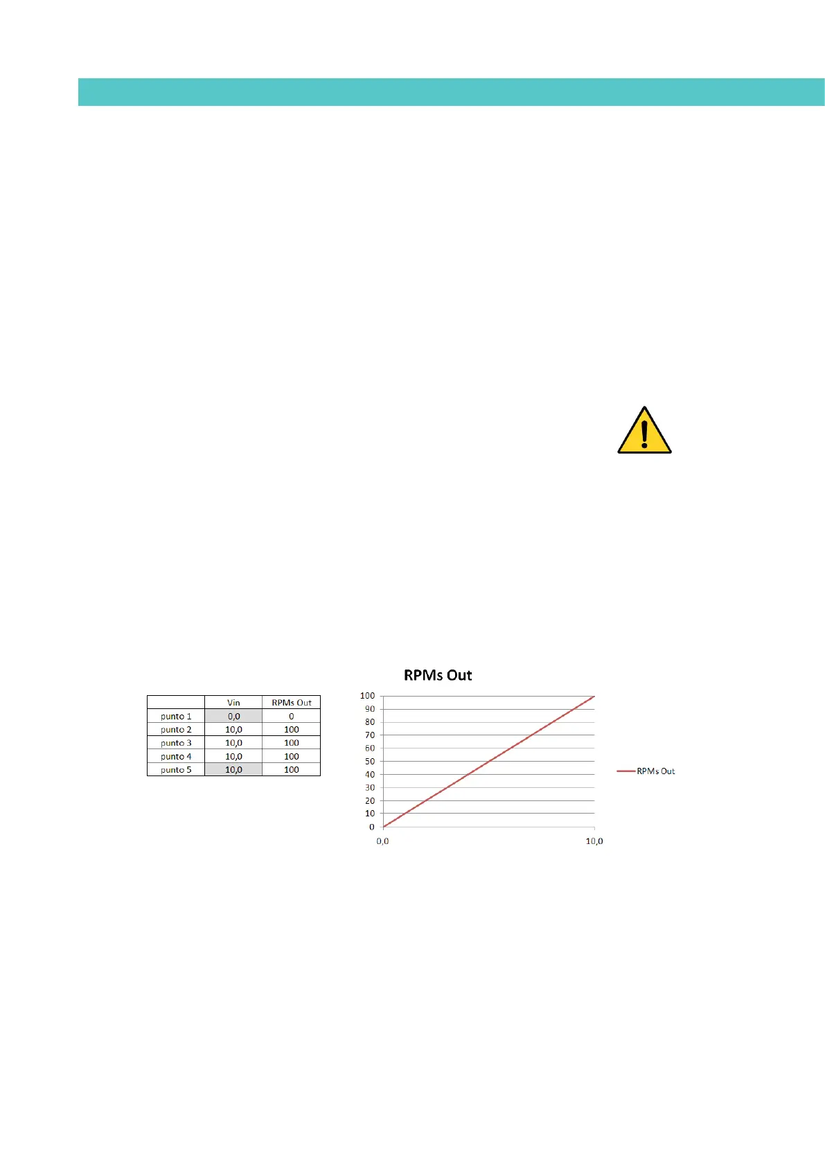 By default the table is programmed (0 V = 0 rpm and 10 V = 100 rpm):