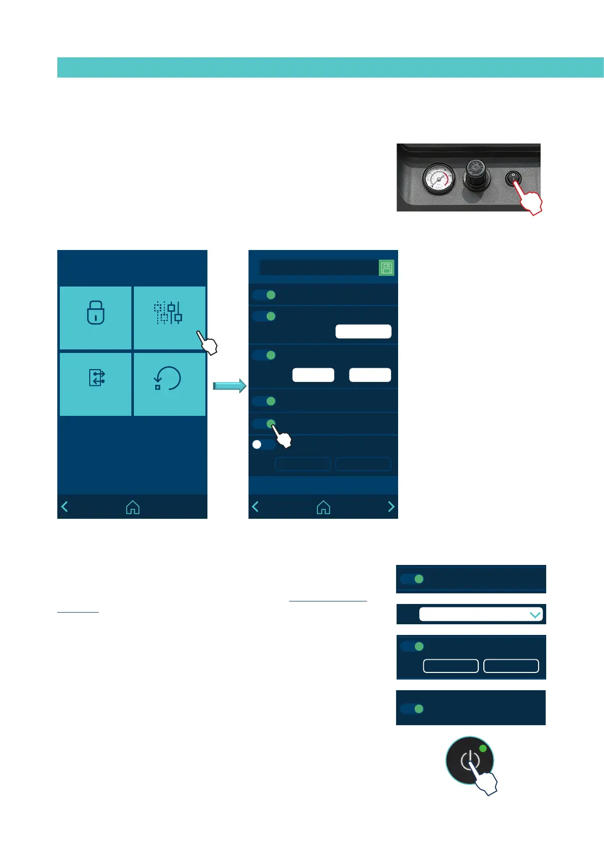 • or by pressing the “ON/OFF” button on the front screen,