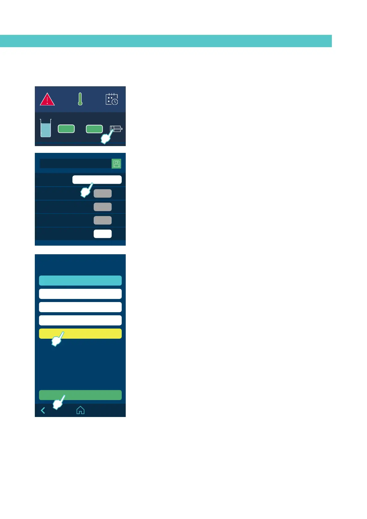 Press the piston icon on the ‘Home’ screen to select the product you want to