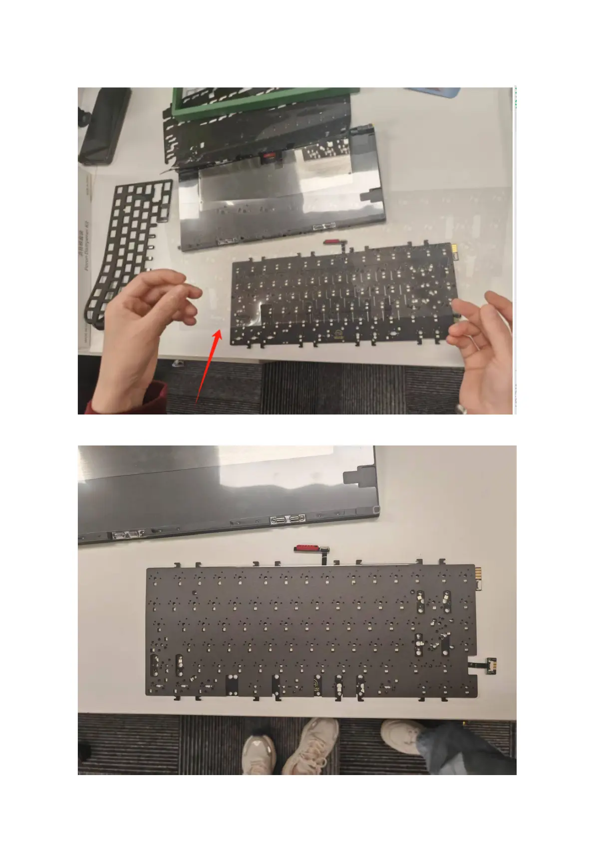 1. Place the clear PET case foam sheet on top of the PCB