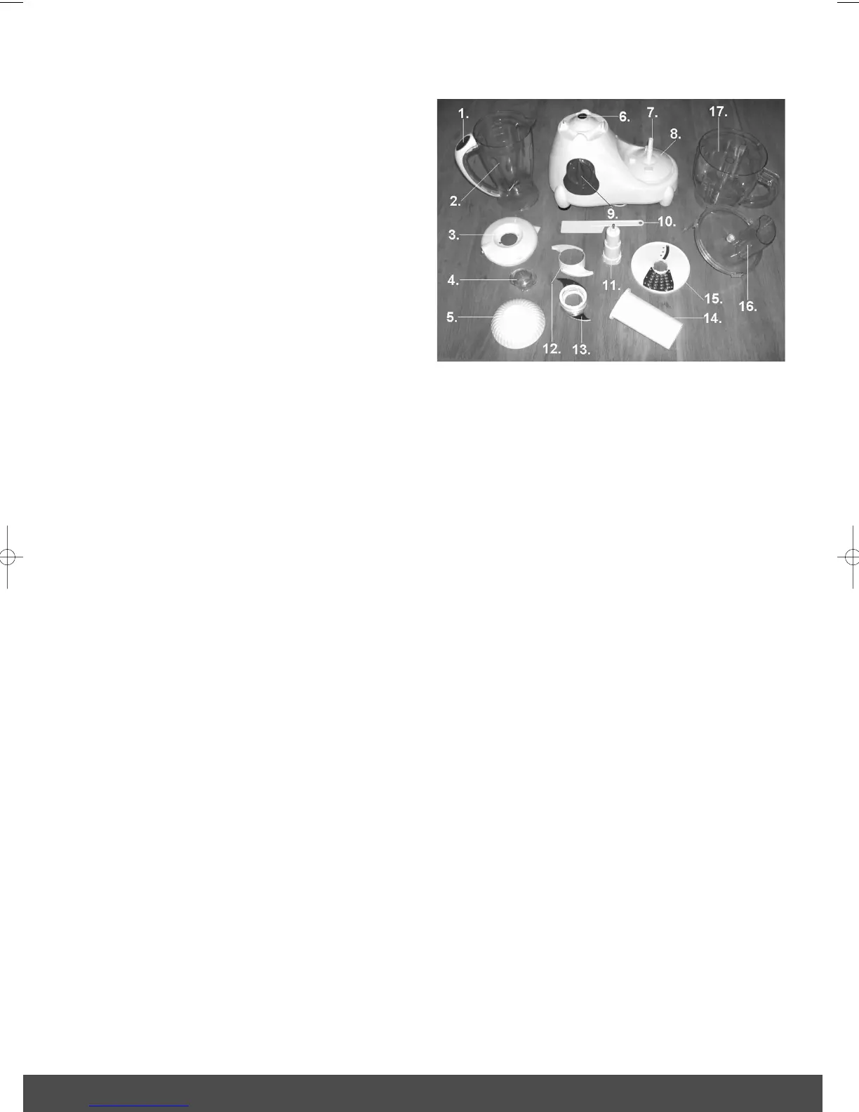 • Matberedarens bas och sladd får inte sänkas ned i vatten eller