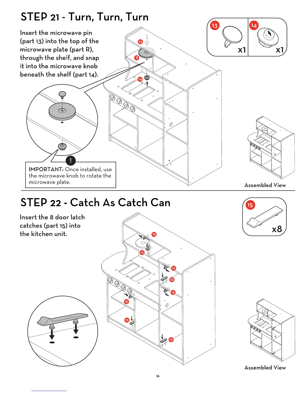 Melissa Chef's kitchen - Doors and Appliances Installation; Steps 21-24: Microwave, Latches, Doors