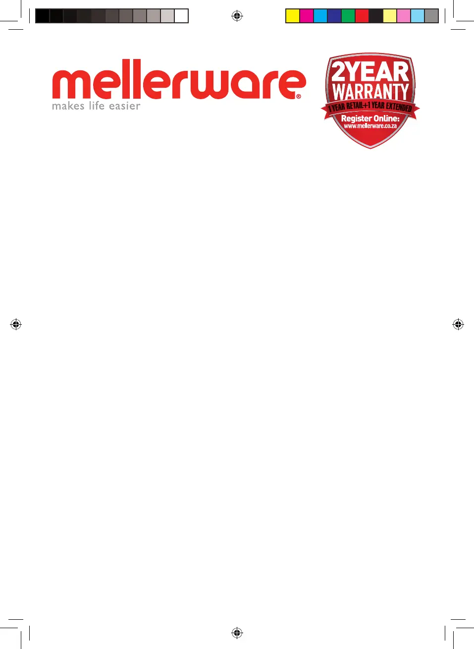 standards. With every Mellerware product purchased you get a 2 year warranty as detailed