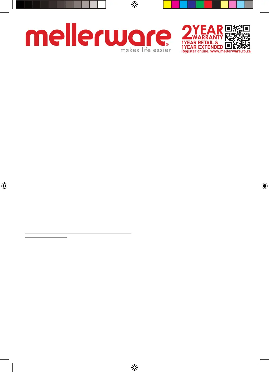veiligheidstandaarde. Met elke Mellerware produk wat gekoop word kry u 'n 2 jaar