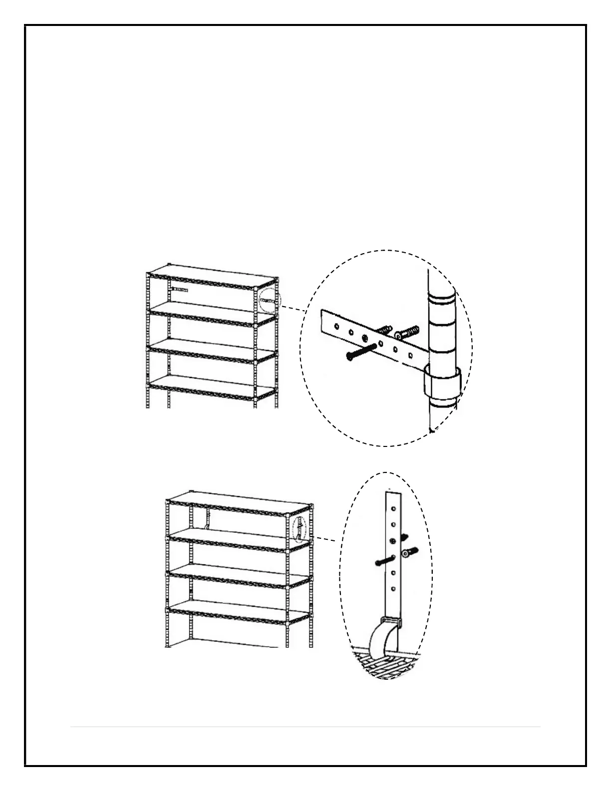 Loop STRAPS (L) around rear poles or back of upper shelves.