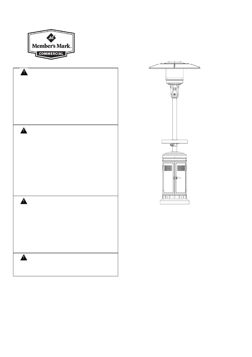 If the burner on your Member's Mark Patio Heater won't light, there are several possible causes: * **Low gas pressure:** Turn the tank valve off and replace the tank. * **Blocked orifice:** Clear any blockage in the orifice. * **Control knob position:** Ensure the control knob is turned to the “ON” position.