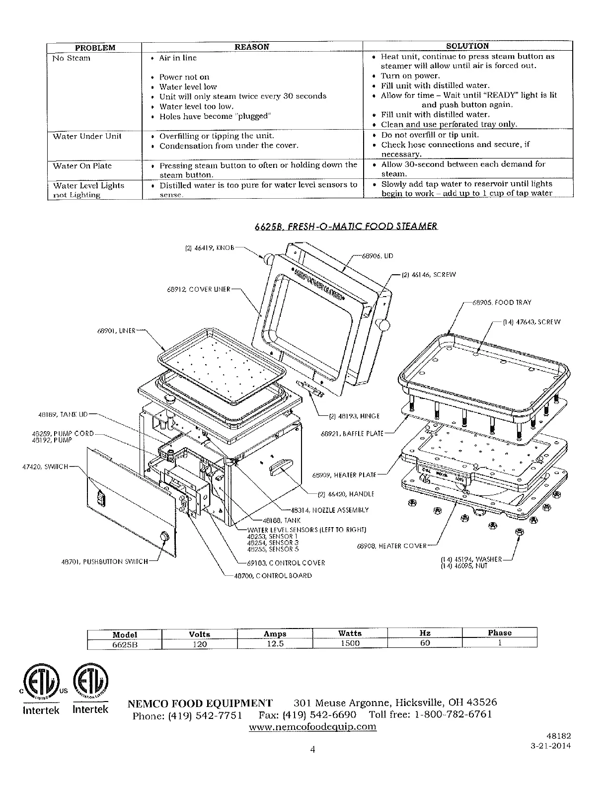 Memco 6625B - Troubleshooting and Specifications; Troubleshooting Common Issues; Component Identification; Model Specifications