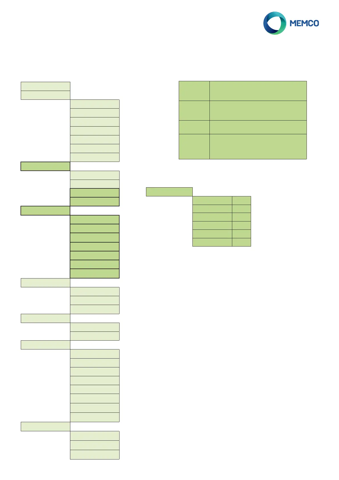 Options du Menu de programmation complet.