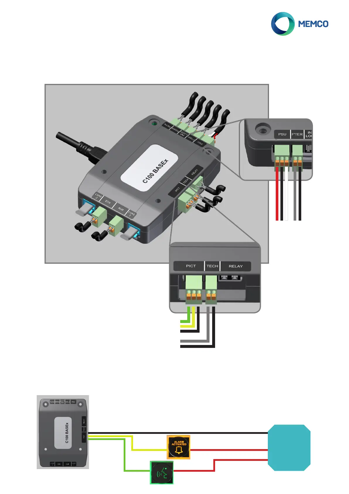 Por favor, consultar os detalhes abaixo de todas as ligações disponíveis nas unidades C100 BASE1 e BASE2. Todas as