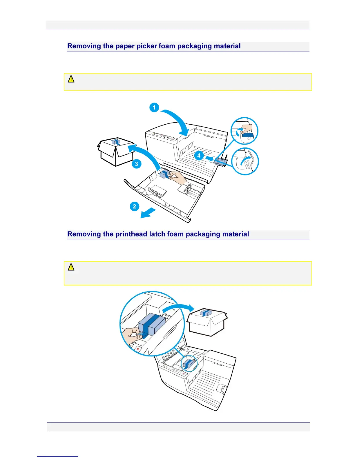 Before loading any paper into the paper tray for the first time, remove the packaging material