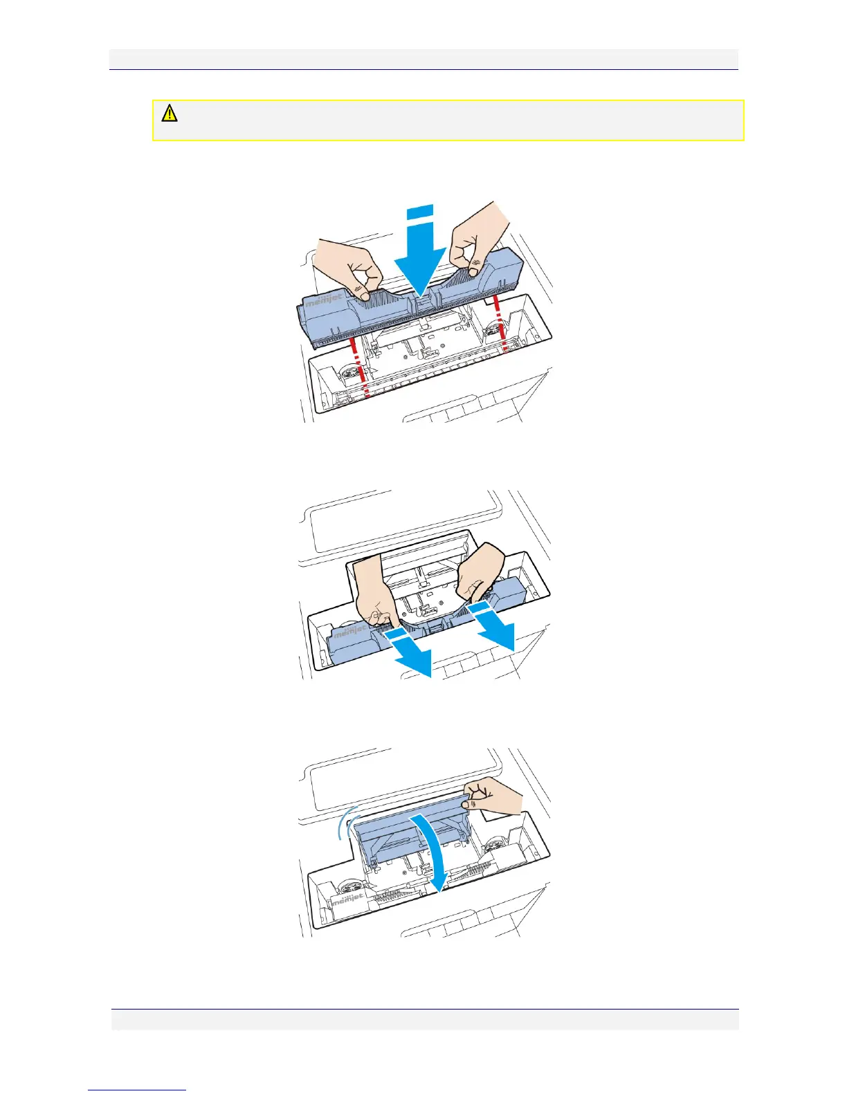 16. Slowly close the printhead latch until a click is heard. The fluidic couplings should