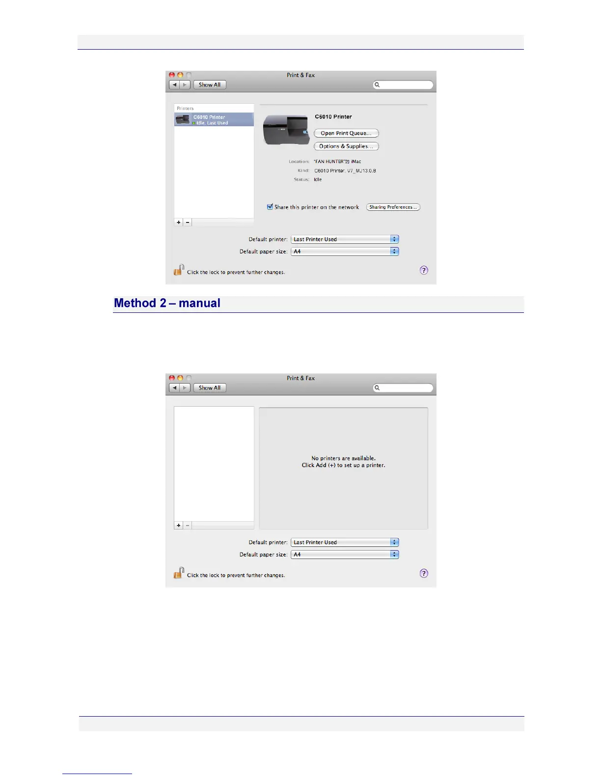 1. Choose Apple > System Preferences > Print & Fax. The dialog shown below should be
