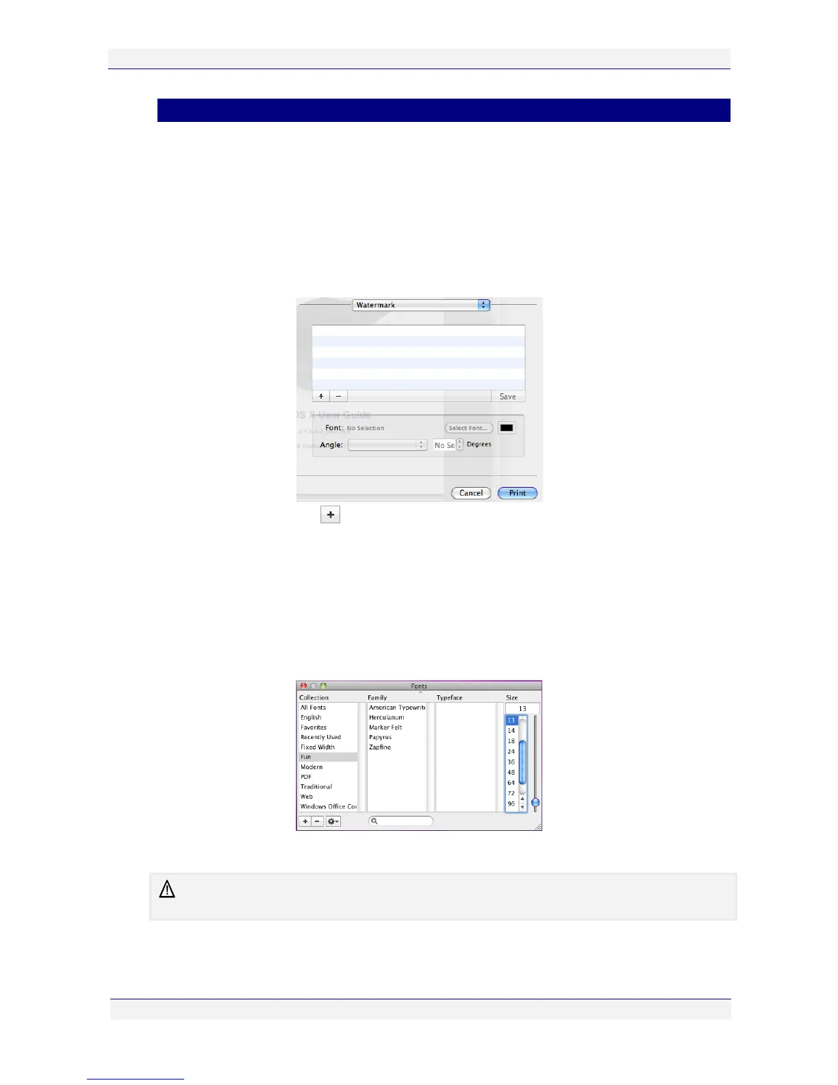 9. To change the font type, color, size and opacity, click Select Font. The standard Mac