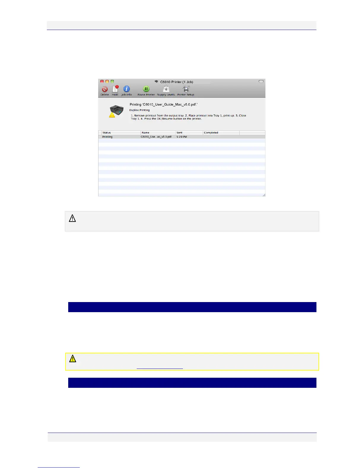 Instructions will be displayed in your printer queue window (see below).