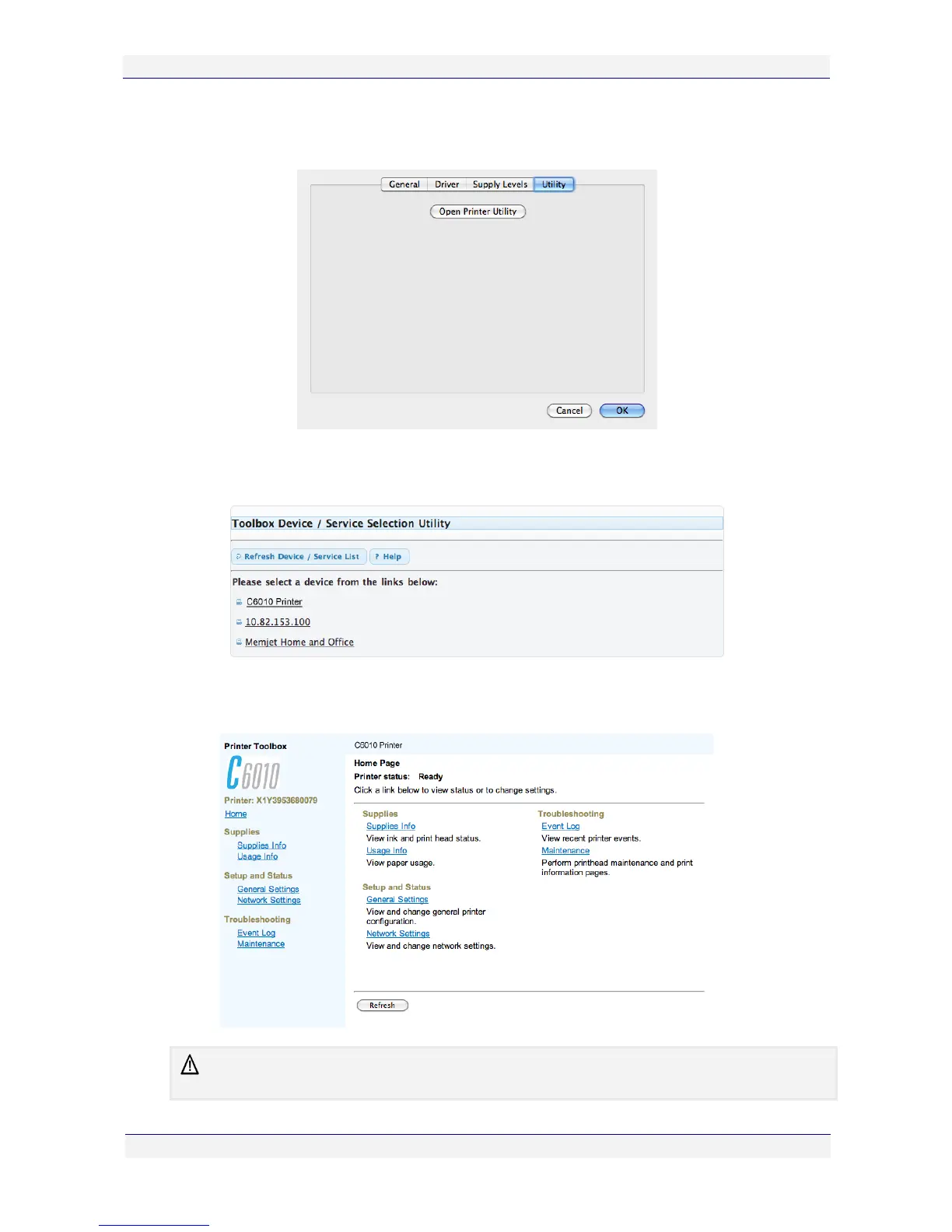3. Select Utility.> Open Printer Utility. Your default Web browser should open, displaying