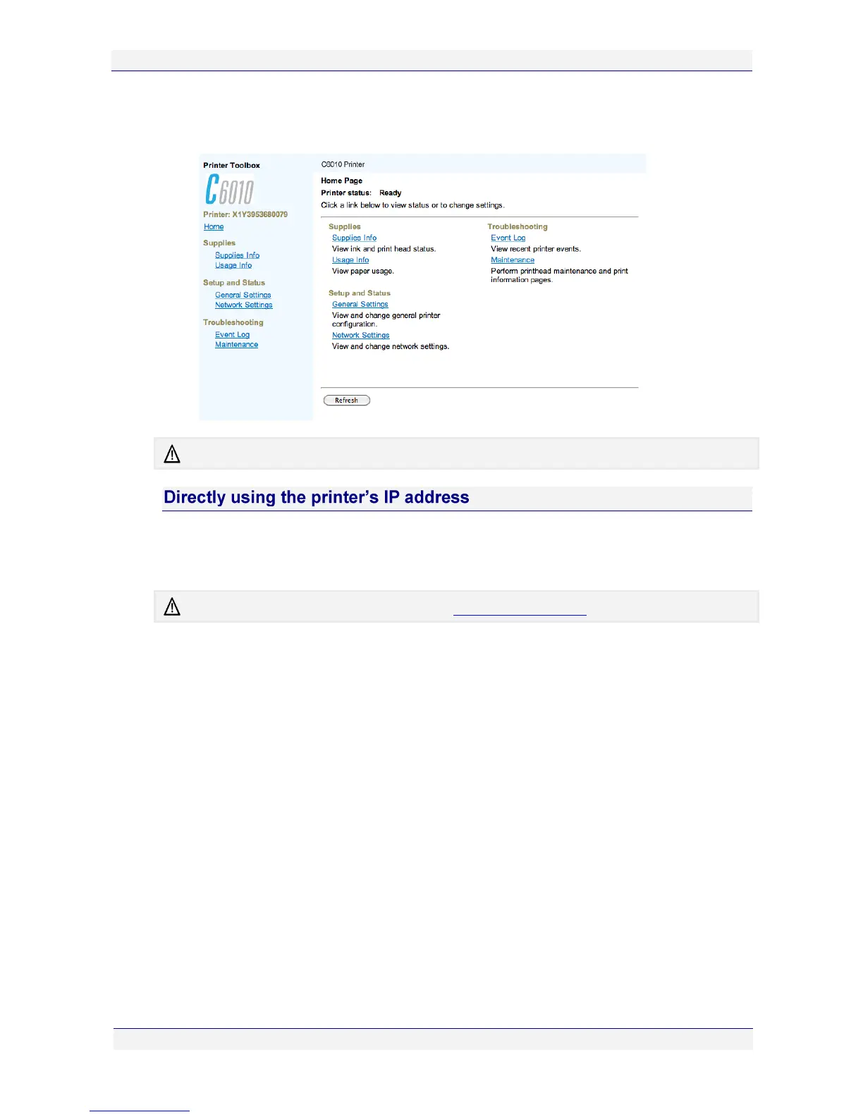 If you know the printer’s IP address, you can access the Toolbox application directly.