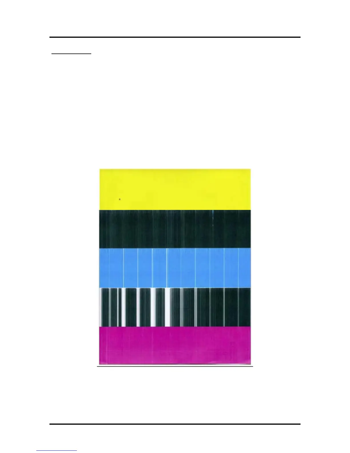 adjacent nozzles, with same issue, will show as wider, crisp, vertical lines of missing color.