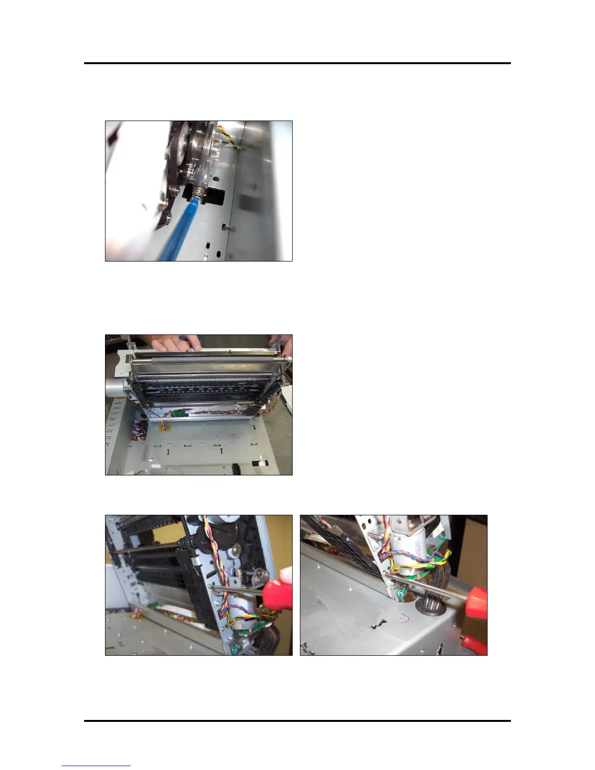 top section of the print-engine back to expose the underside. Be careful not to damage wires or