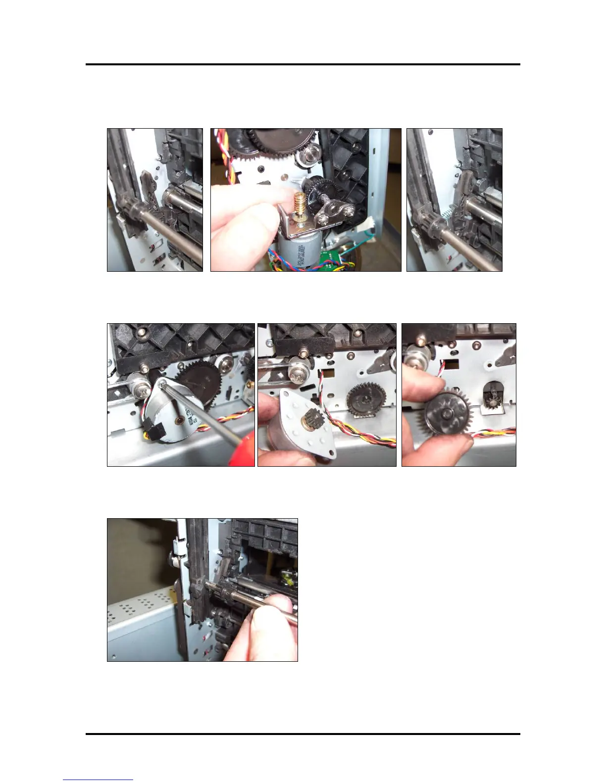 8. Remove the Service Station Drive Motor (Servo), bracket and drive gears. This will allow free the