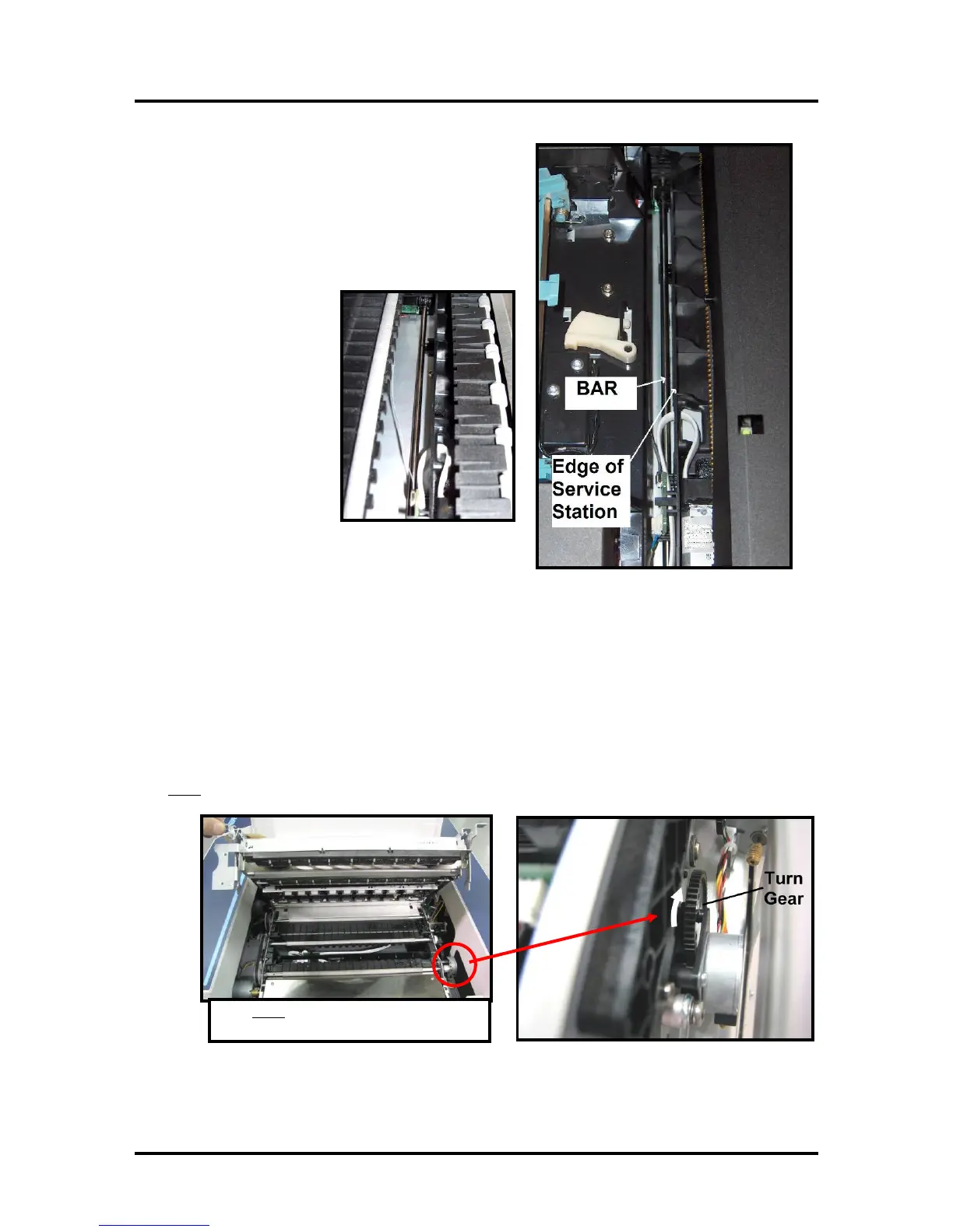 gear. Do NOT manually drive the Service Station into the print engine beyond this point.