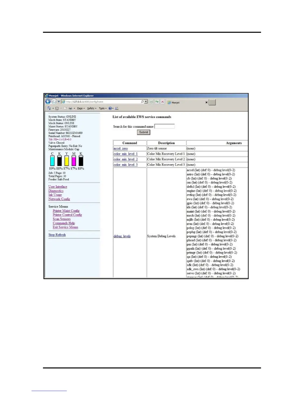 Provides a list and descriptions of available EWS service commands.