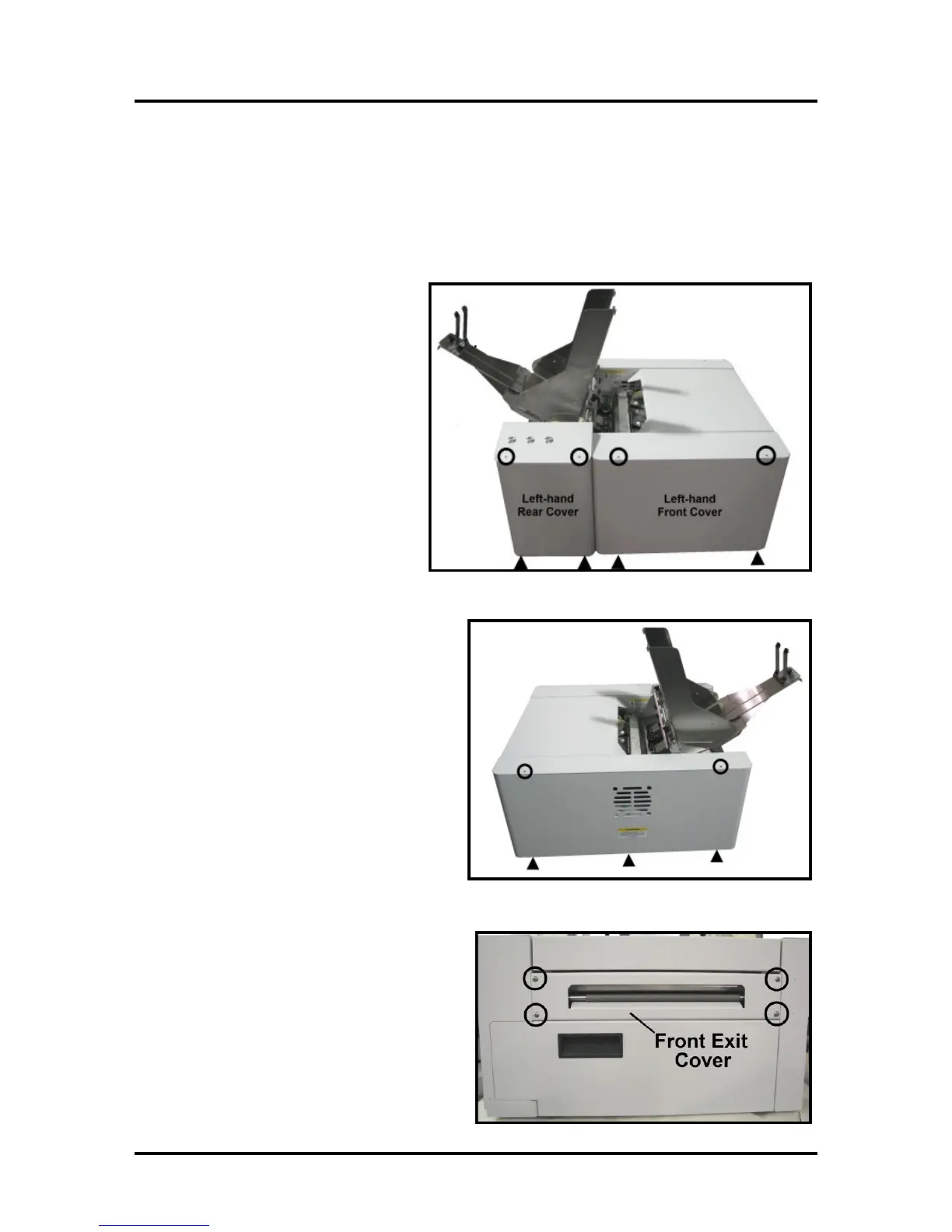 5. Remove Front Exit Cover by removing (4)