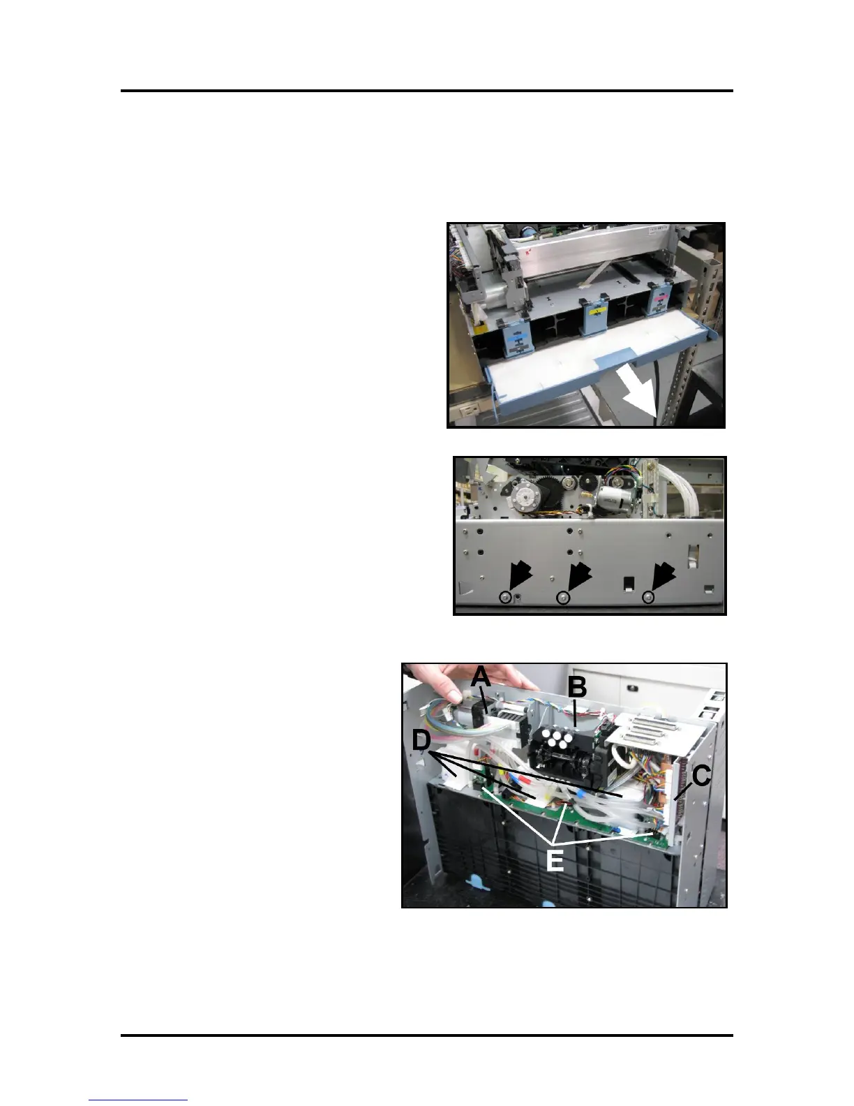 in previous pages. It is also assumed that the ink tanks, printhead and service station are removed.
