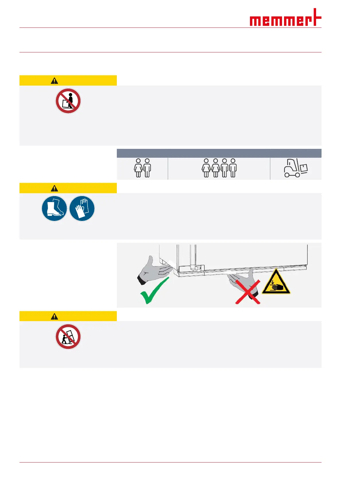 – Larger appliances must not be carried, and only transported by pallet truck or forklift