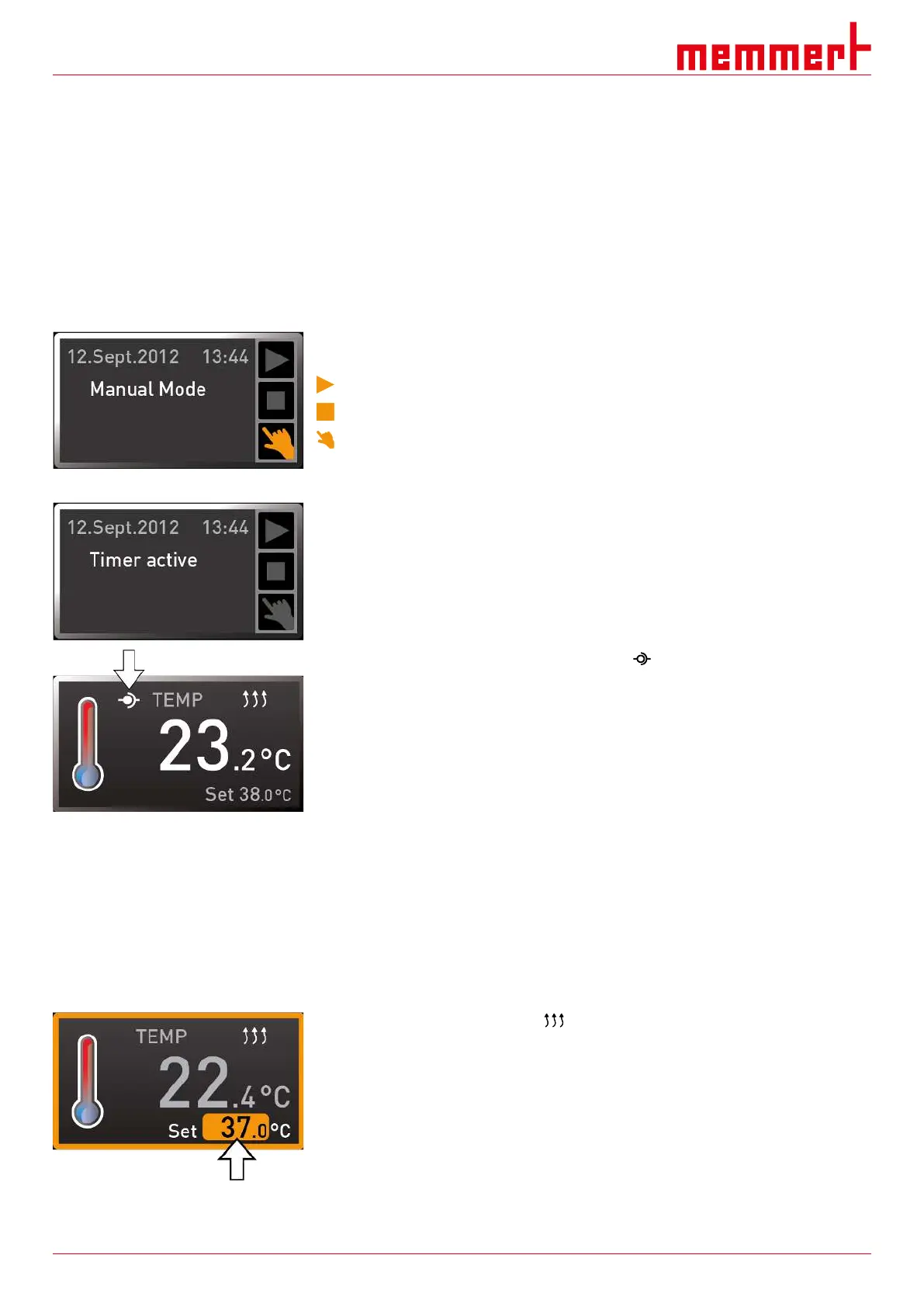 Heating operation is indicated by the symbol.