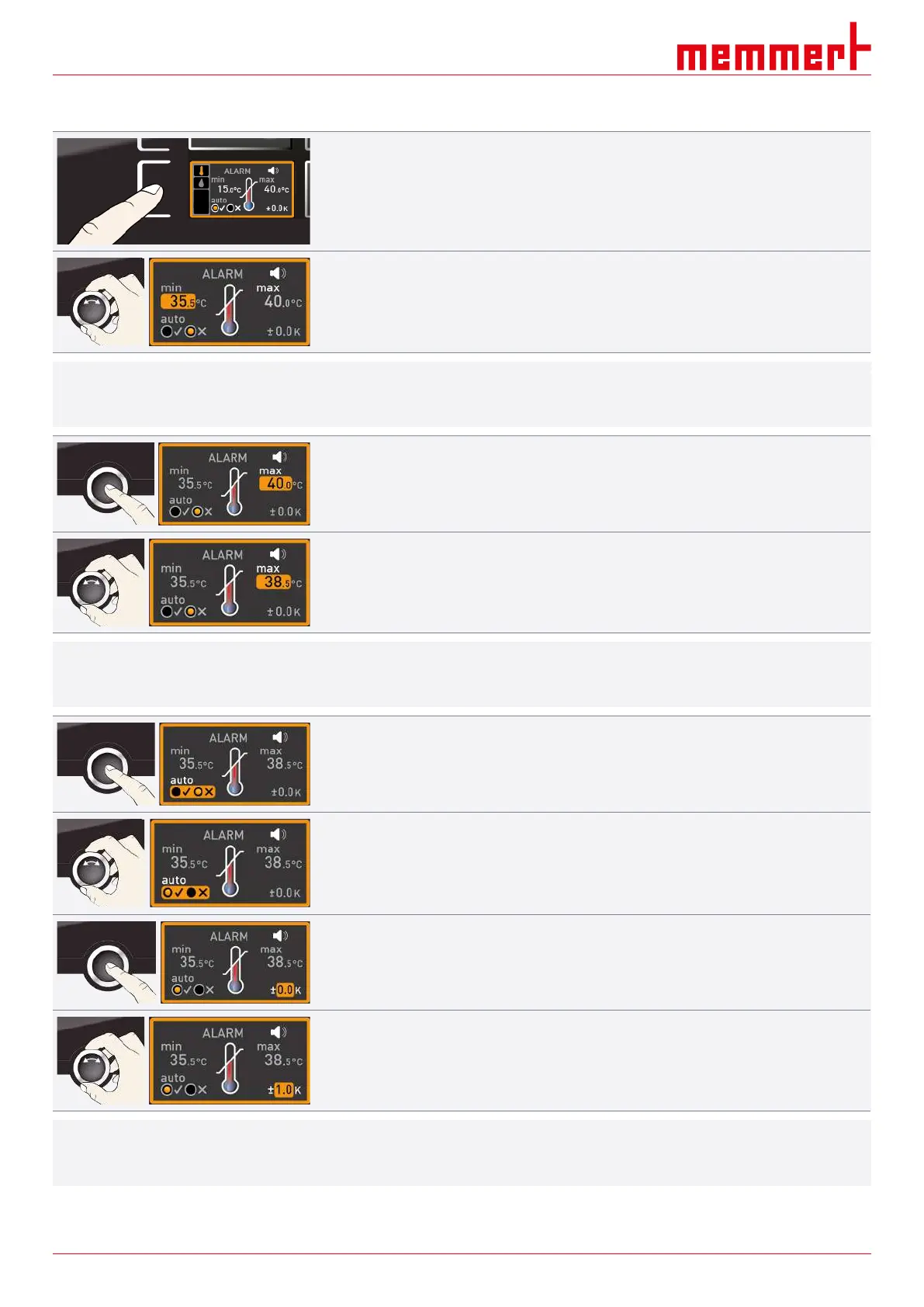 4. By turning the turn control, adjust the desired upper alarm limit.