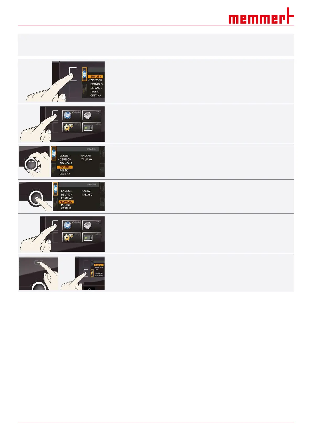 3. Select the desired new setting, e.g. Spanish (ESPANOL) using the turn control.