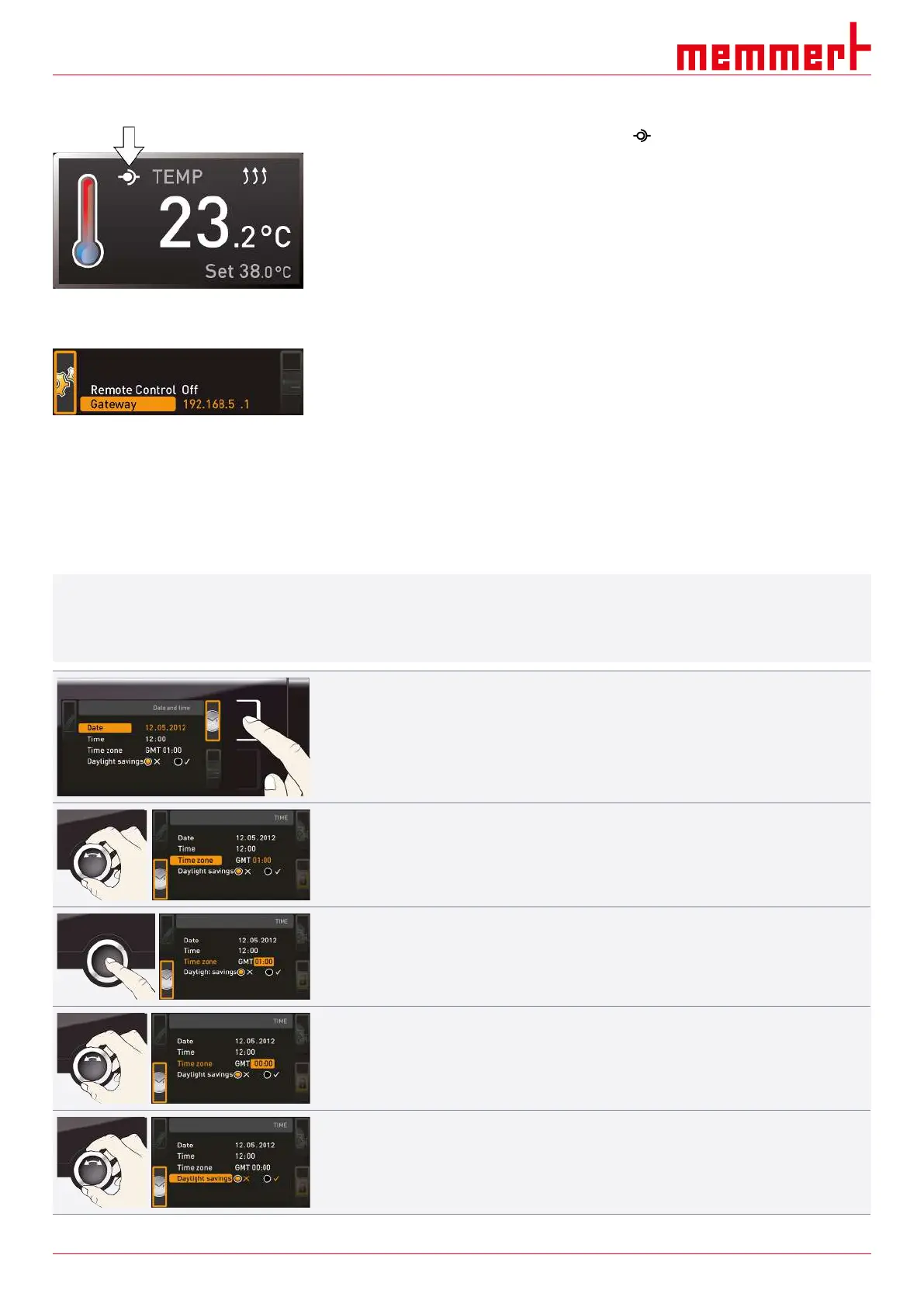4. Set the time zone of the installation site with the turn control (e.g. 00:00 for Great