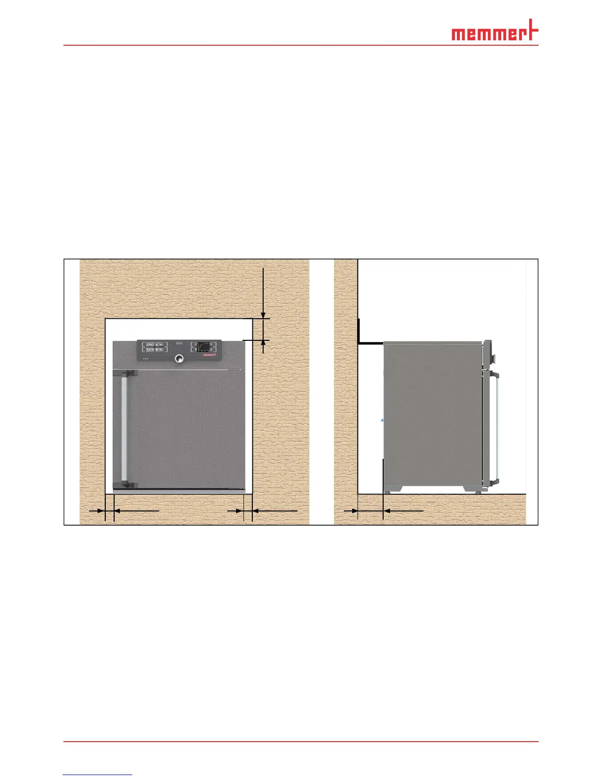 ance from the ceiling must not be less than 20 cm and the side clearance from walls or nearby